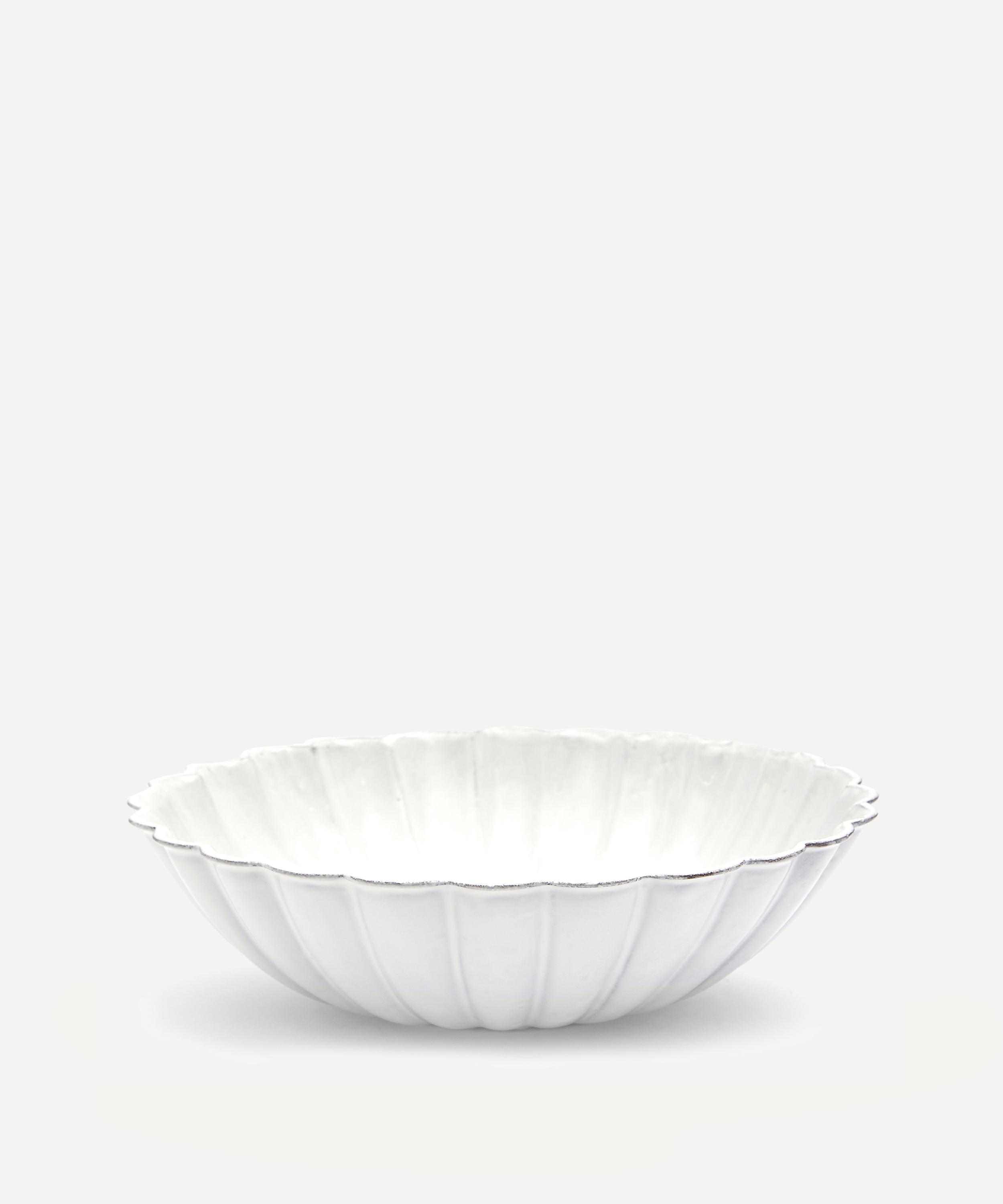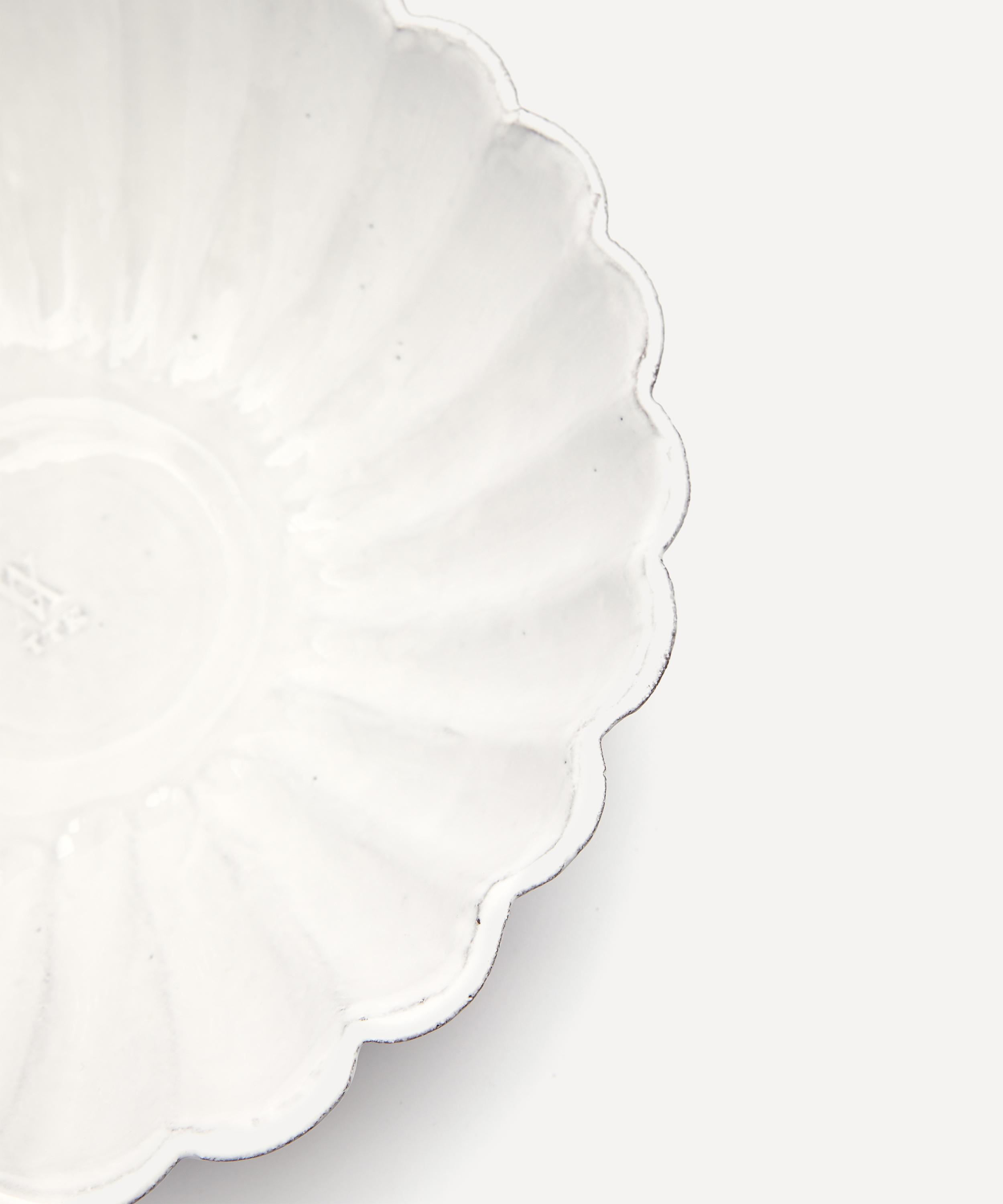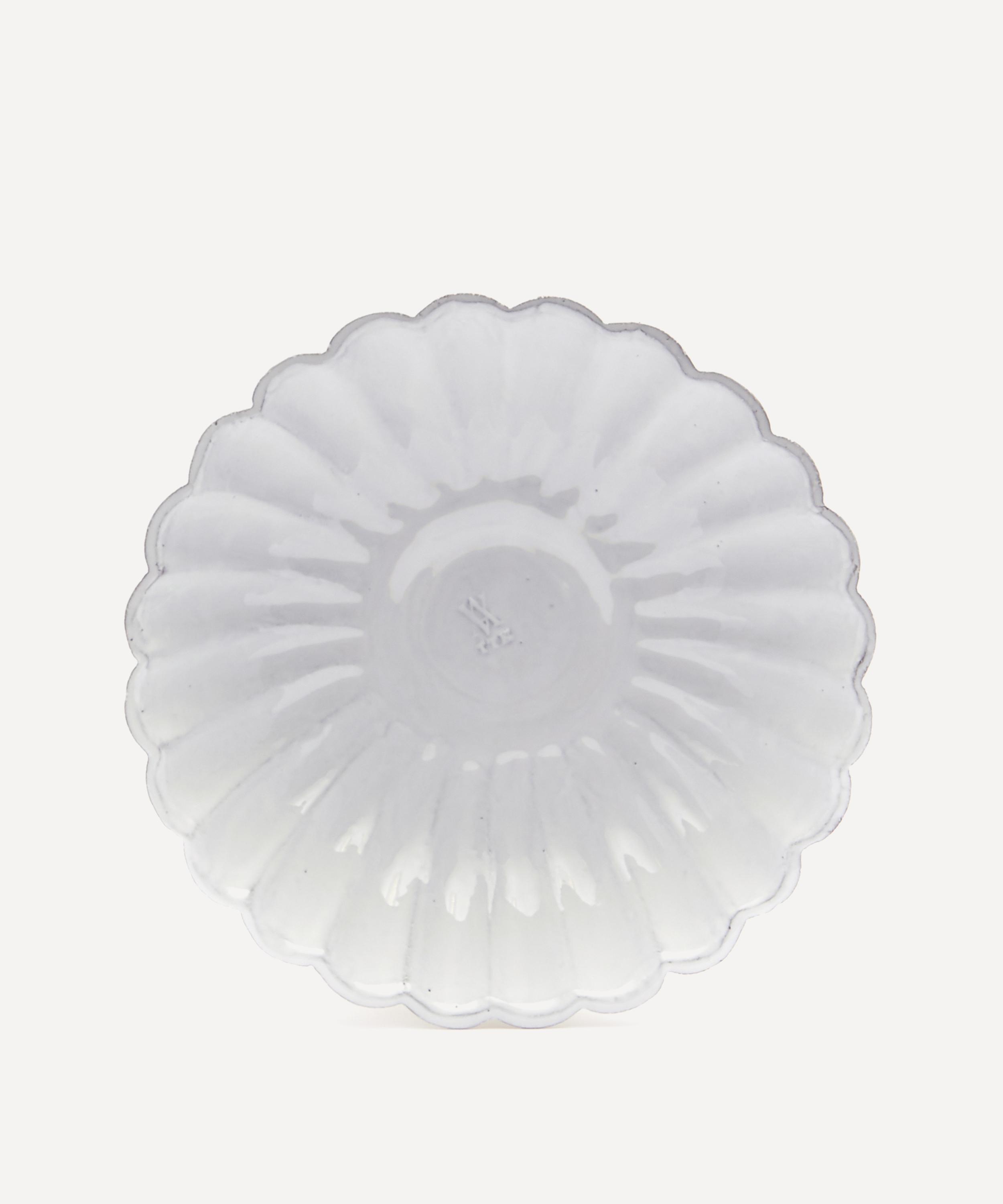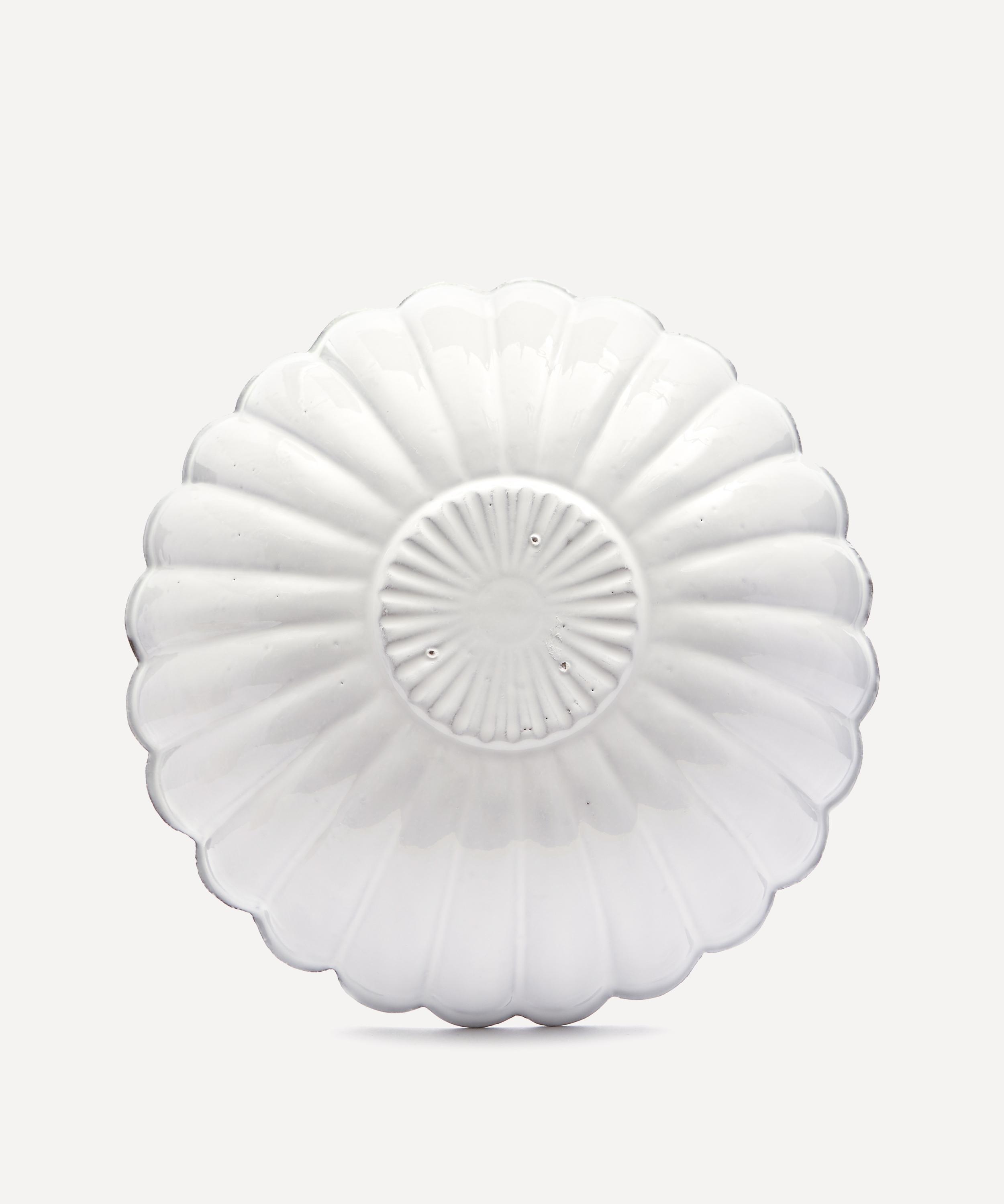 Votary of pre-industrial fabrication, Astier de Villatte is celebrated for being the one and only studio in Paris to hold and harbour the traditions of artisanal ceramic production. Restoring the ancestral systems of moulding and stamping, the Peggy salad bowl is made using handcrafting techniques from the Middle Ages which involve moulding a handmade sheet of clay, double firing the ‘biscuit’ piece and glazing the product in white enamel – a lengthy process that requires a drying time of up to one month. Characterised by curved scorings, the salad bowl is engraved with the brand’s signature crest - depicting an interlacing A & V - alongside the initials of one of the 40 master artisans who created it. Each handmade piece tells a beautiful story, it romances and imparts a sense of nostalgia into its owner. Arrange with other serveware in the collection to breathe an air of authenticity into your table setting.