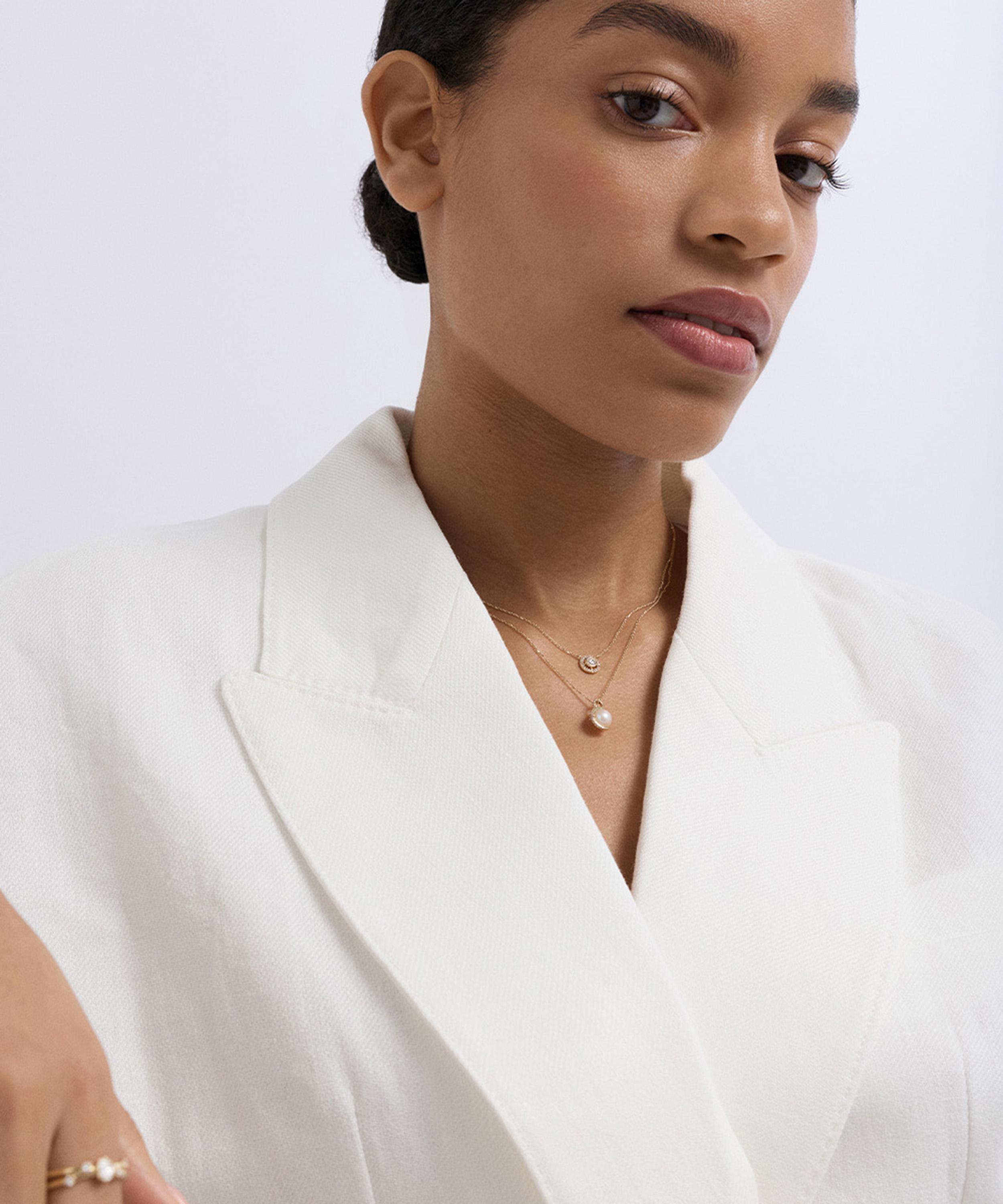 Rendered in solid 14ct gold, this necklace pairs a luminous freshwater pearl with sparkling pavé diamonds, creating a design that feels both timeless and modern. Offering endless styling options, perfect for both day and evening looks, wear yours alone for understated elegance or style as part of a curated stack for a contemporary finish.