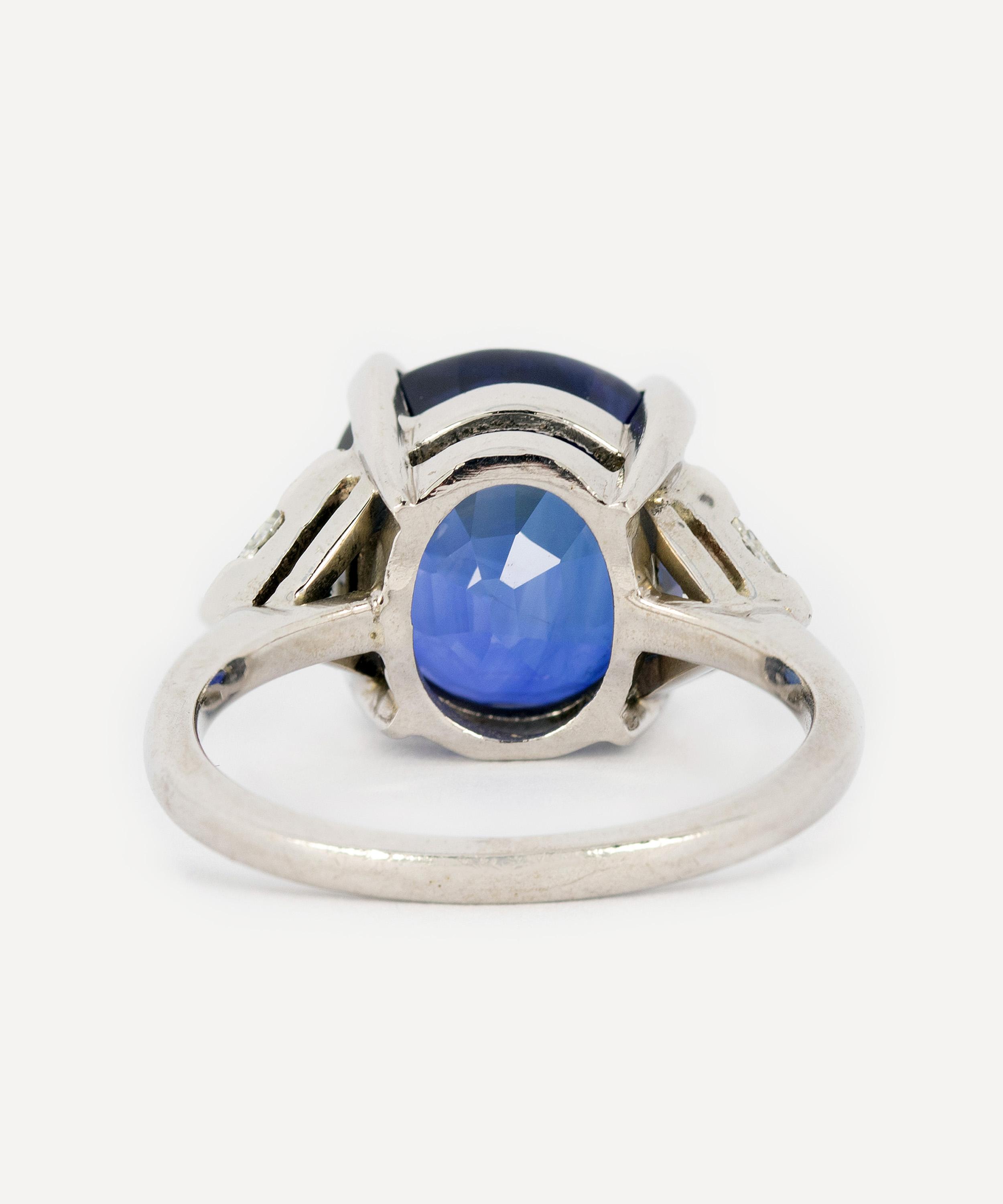 Tests 14ct White Gold; Estimated 7ct Ceylon Sapphire; Estimated 0.65ct Diamond