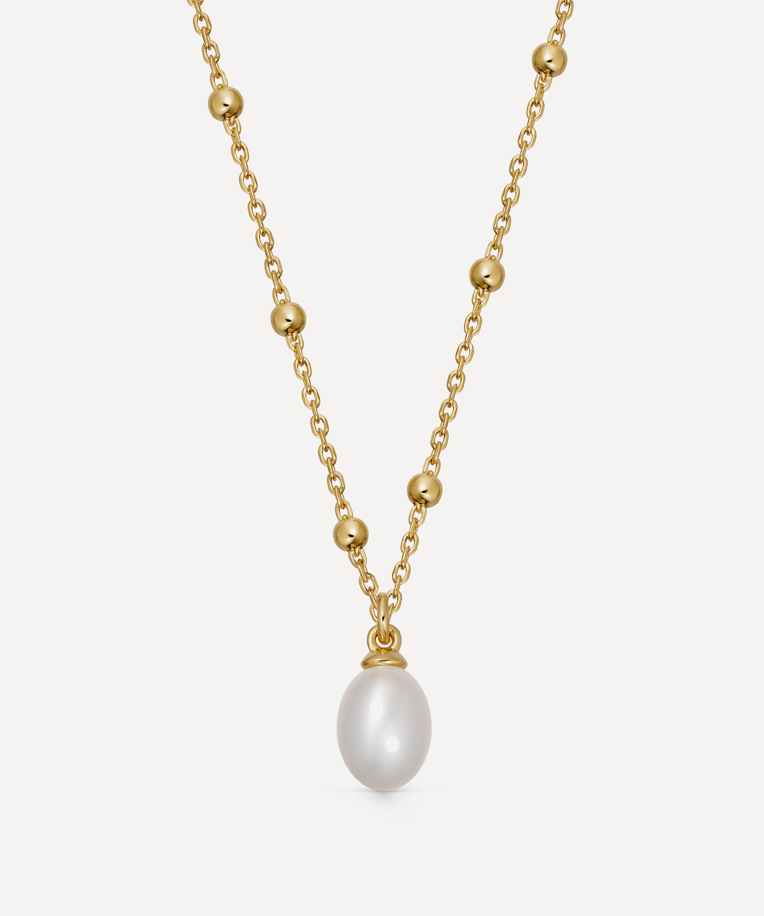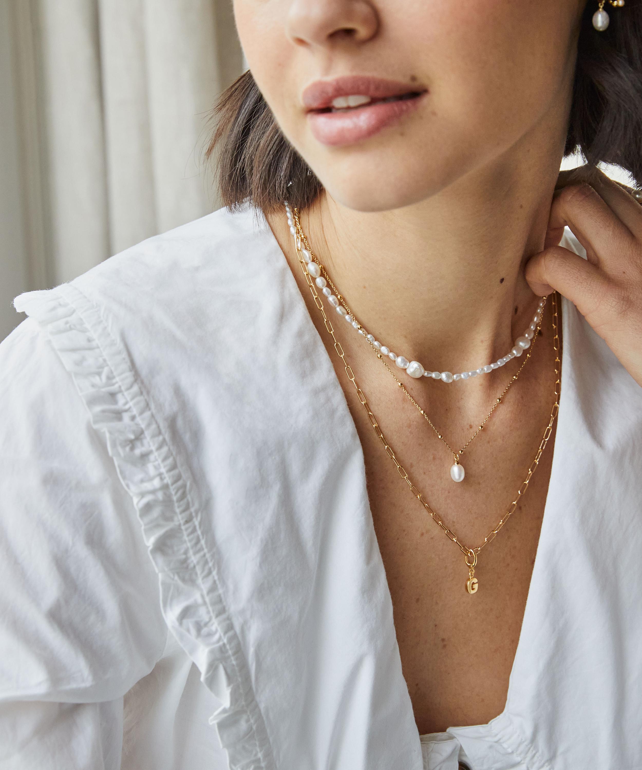 Crafted from sterling silver plated in 18ct gold vermeil, it features a delicately beaded chain decorated with an opulent freshwater pearl. Style it by itself, stack it with another pearl necklace and gold necklace, or team it with matching pieces from the collection.