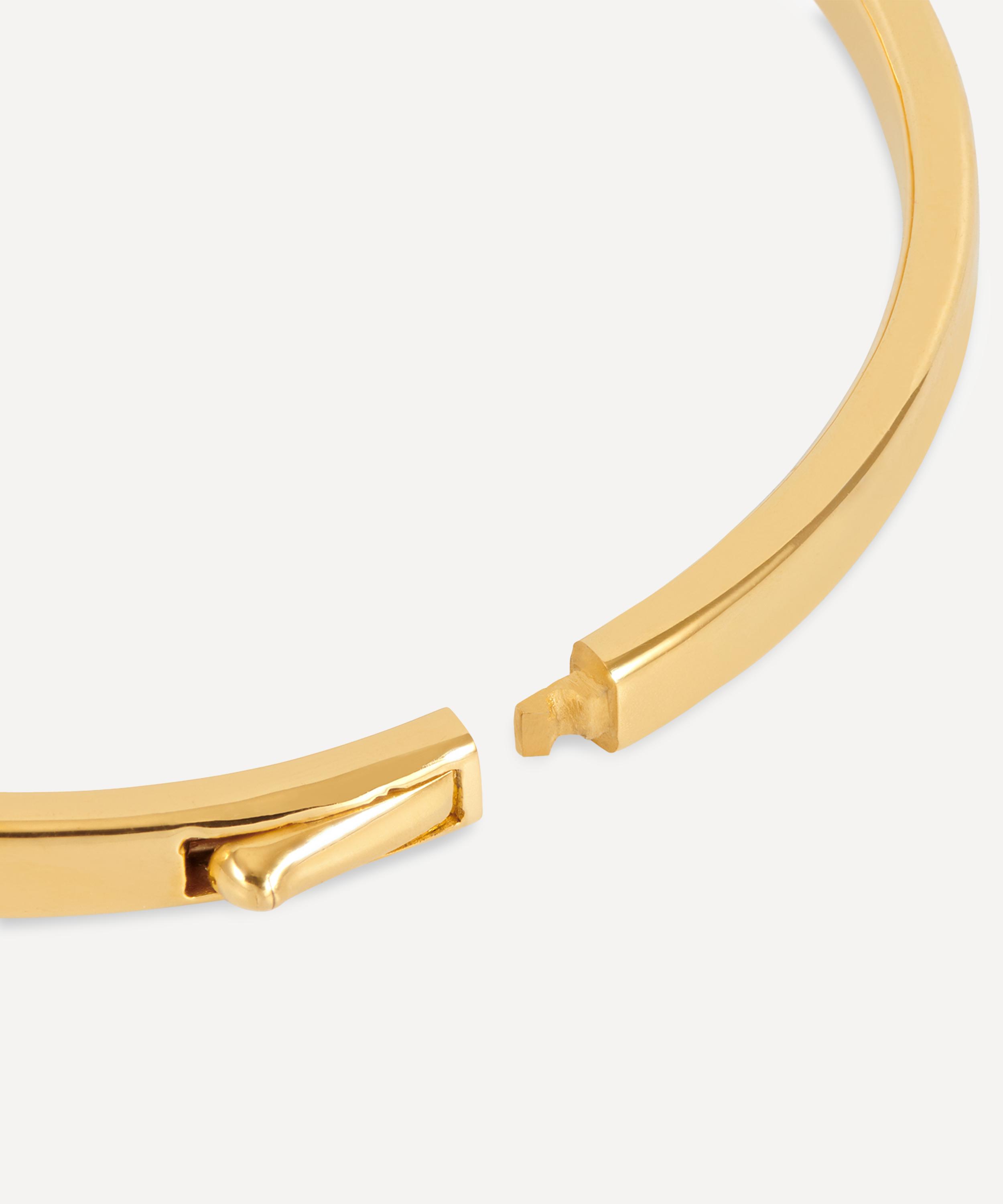Crafted from sterling silver plated in 18ct gold vermeil, it features a sleek and timeless silhouette in a high-polished finish – suitable for engraving to make it uniquely yours. Boasting a perfect everyday staple, wear it solo for a minimal look or layer it with an eclectic array of chains, cuffs and charm bracelets to build a dynamic wrist stack.
