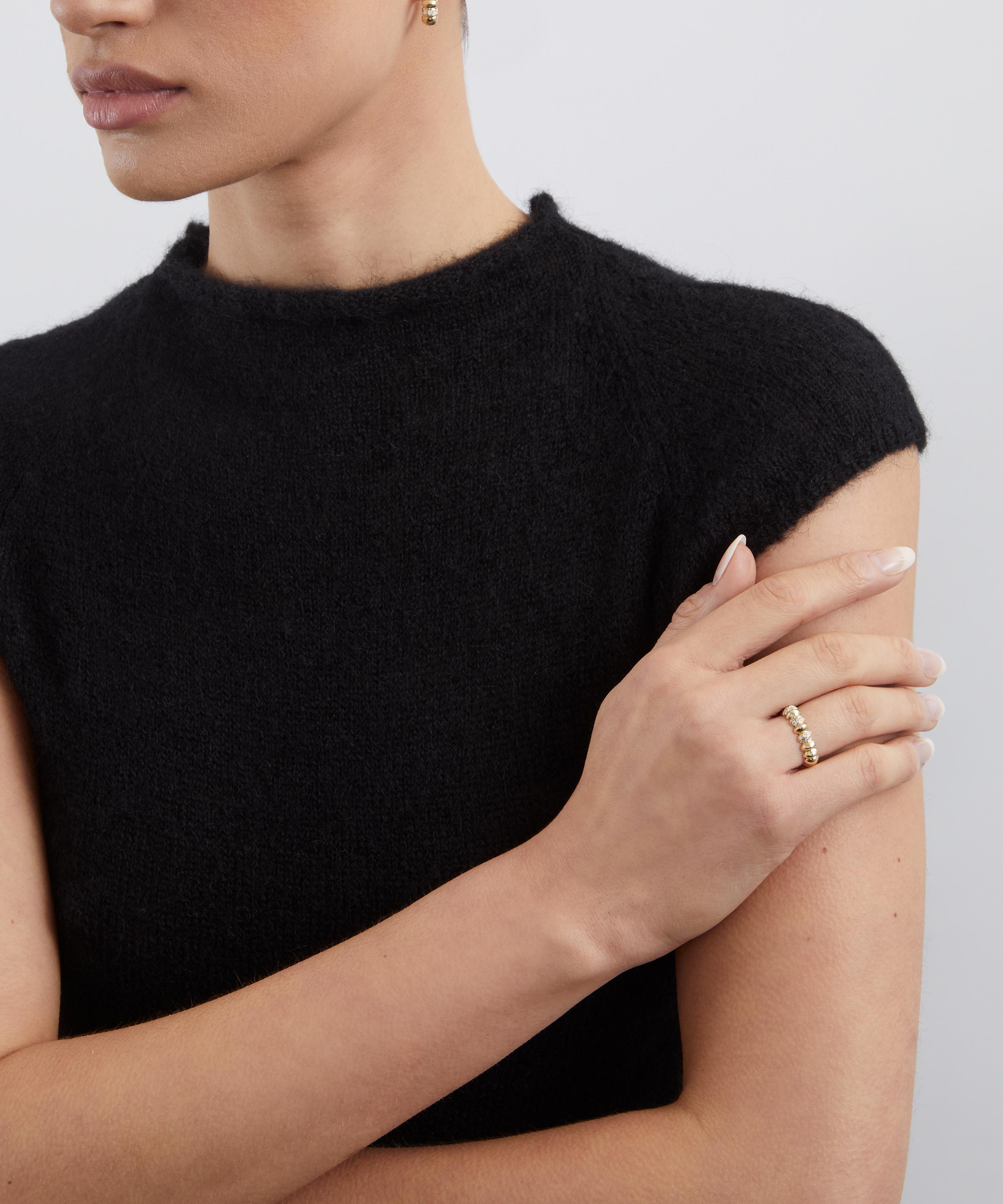 Handcrafted in Italy from solid 9ct gold, its softly rounded silhouette is shaped to echo the smooth, naturally worn beauty of pebbles. The tactile surface reflects light with a gentle radiance, celebrating understated design and timeless appeal. Available in plain gold for a refined finish or adorned with semi-pavé diamonds for a subtle touch of brilliance, the ring balances fluidity with contemporary craftmanship. Wear alone for a considered statement or pair with the matching pieces from the collection to create a harmonious, layered look grounded in quiet strength and serenity.