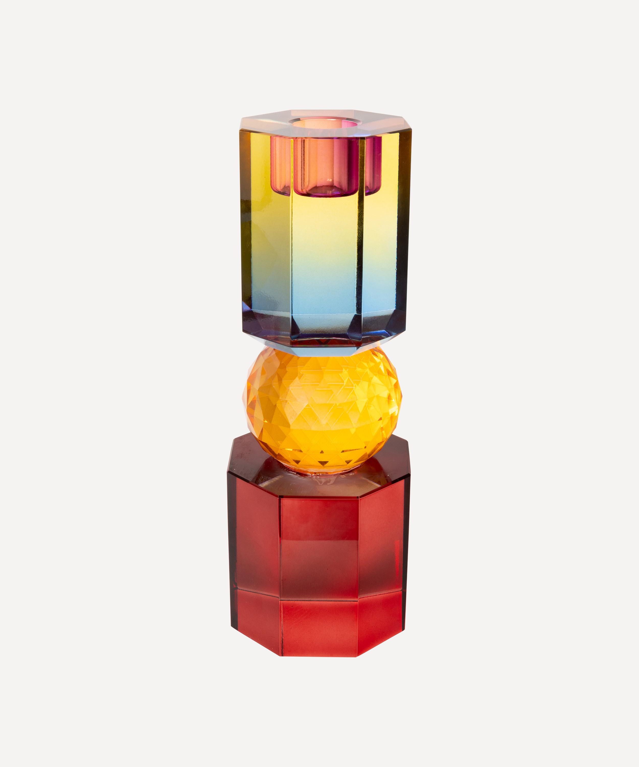 Designed to create ambience in your space, this crystal glass candlestick holder from Danish brand EJA boasts a colourful, gleaming home addition.