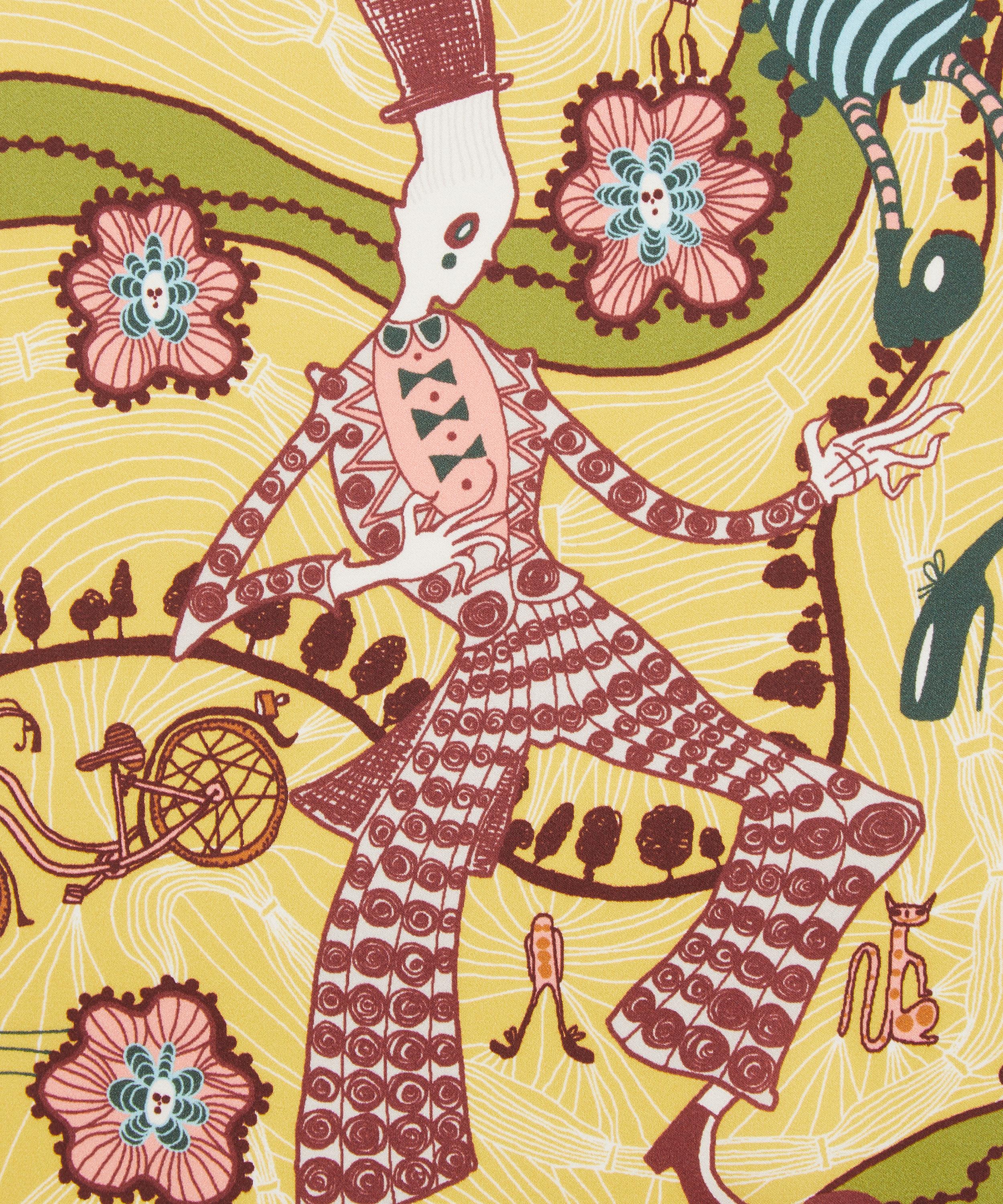 In celebration of Sir Grayson Perry’s 65th birthday, London’s Wallace Collection has curated Delusions of Grandeur, an exhibition on Perry’s life and work. The exhibition’s central muse, Shirley Smith – a character invented by Perry - has inspired his original design for Liberty’s 150th anniversary collection. Conceived by Perry as an outsider artist, Smith’s obsession with the Wallace Collection forms the basis for this eclectic design, where one can spot a crude version of Hertford house as well as various cats which are another noted passion of hers.