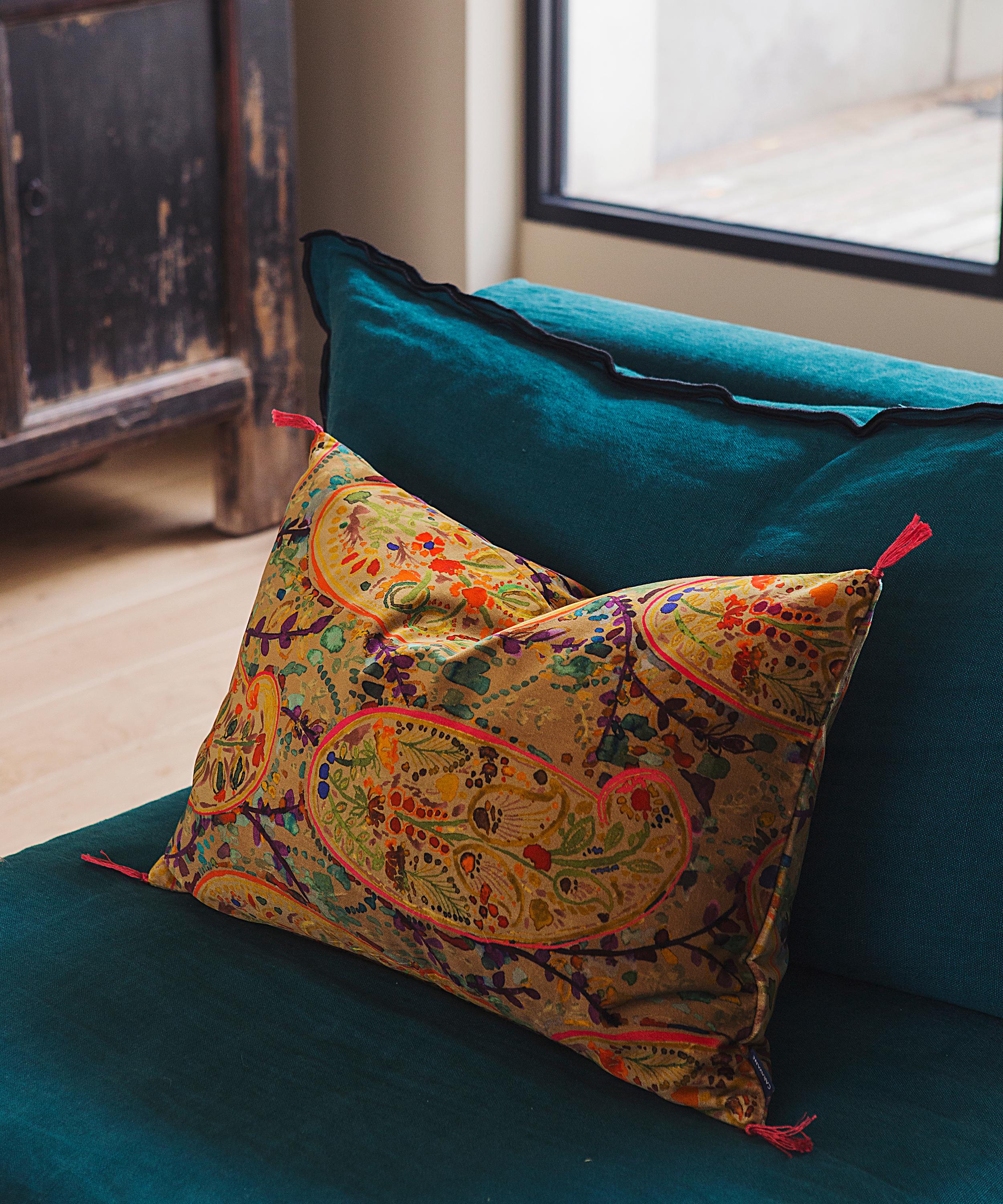 The Inika cushion cover from Caravane is meticulously crafted from soft cotton velvet, radiating thoughtful charm.