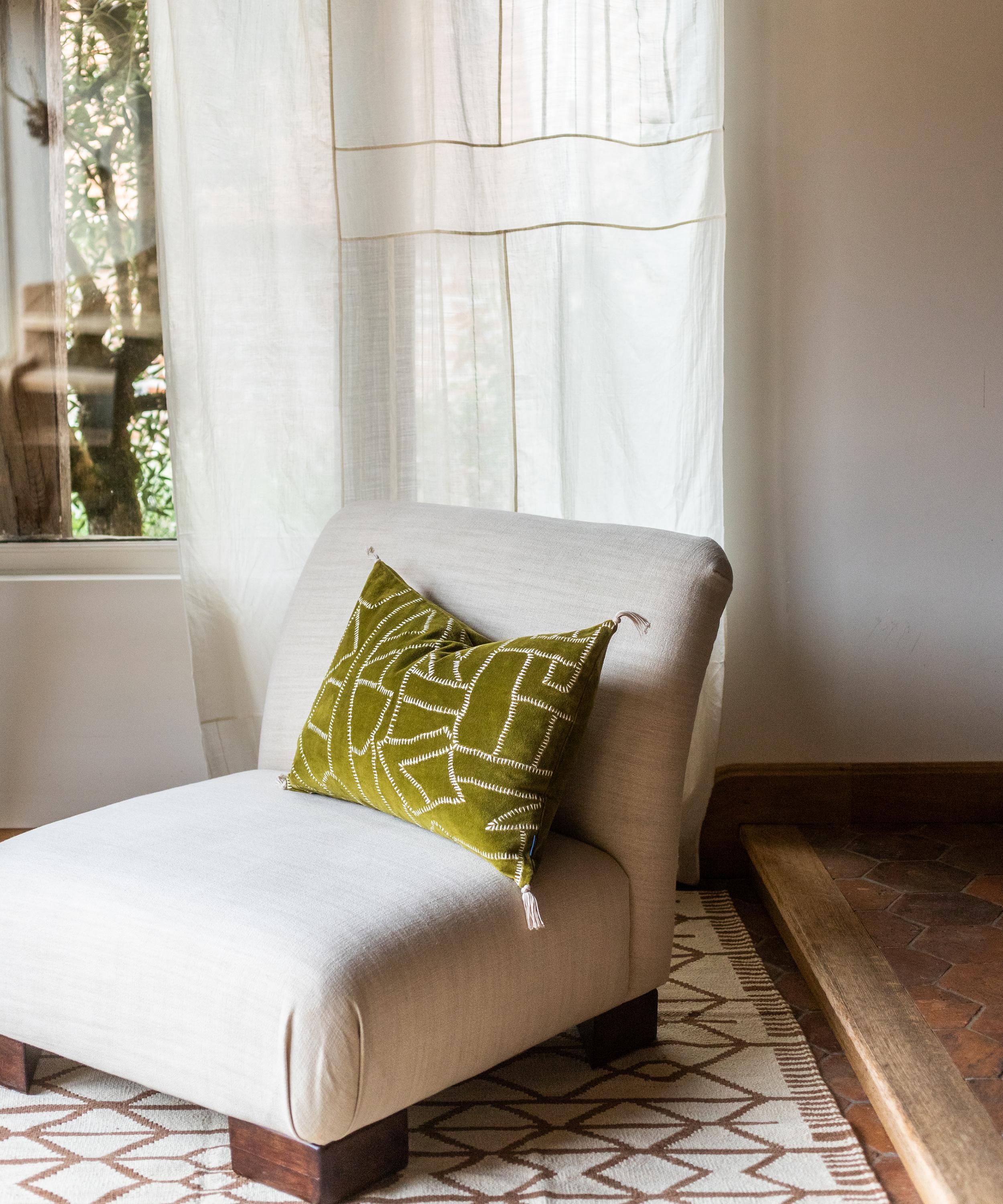 A homeware brand that celebrates the eclectic landscape of a lived-in home, this cushion cover presents Caravane’s Jody Green print – featuring an embroidered geometric pattern that evokes topstitching. Perfect for adding texture and comfort to interior spaces, arrange it with a set of coordinating cushions on a sofa or bed.