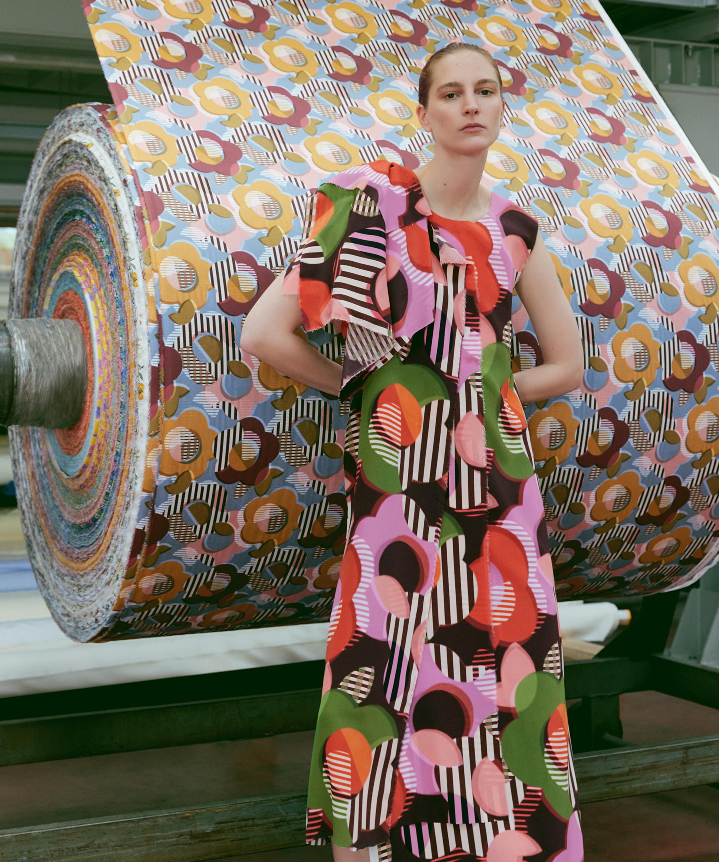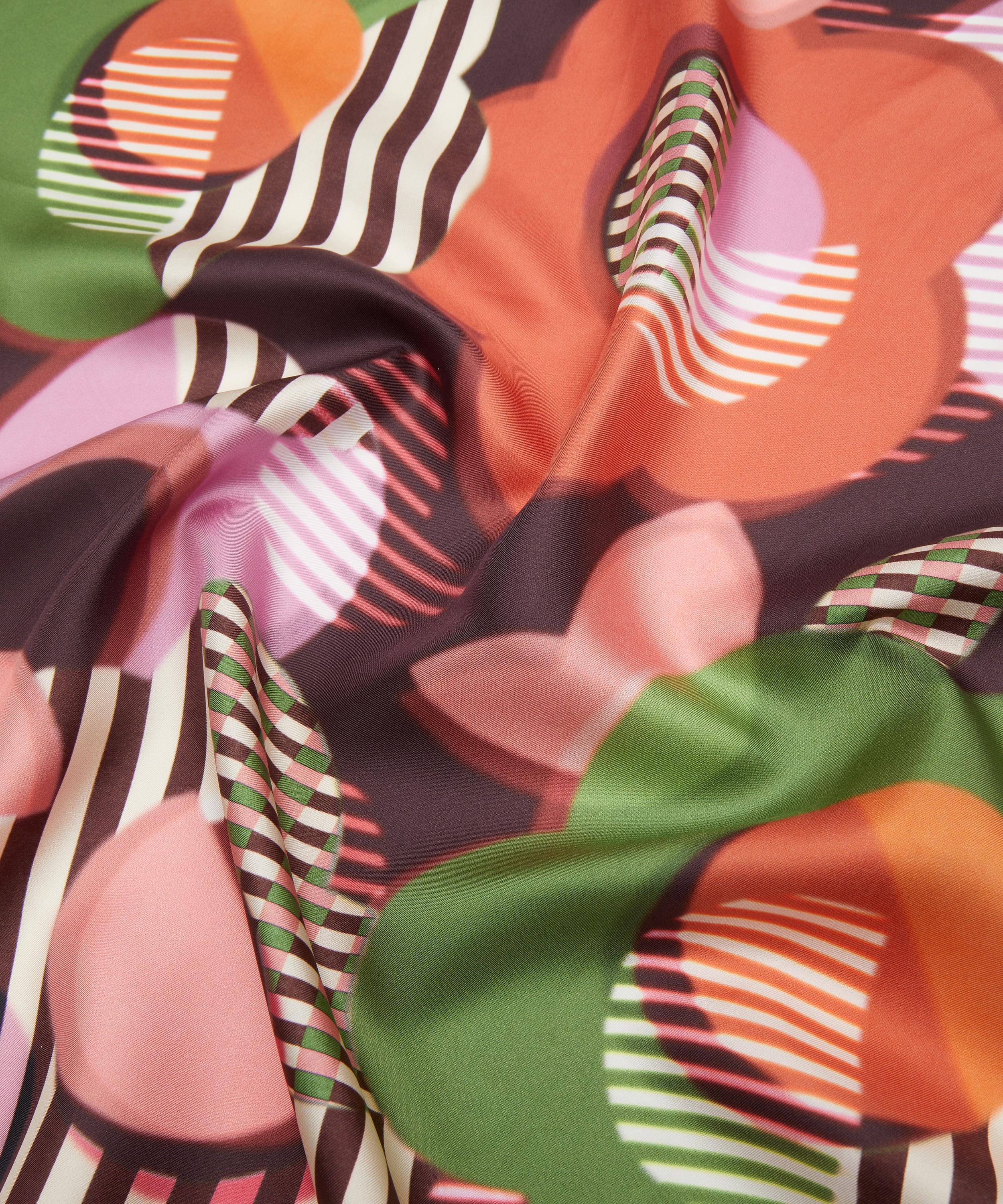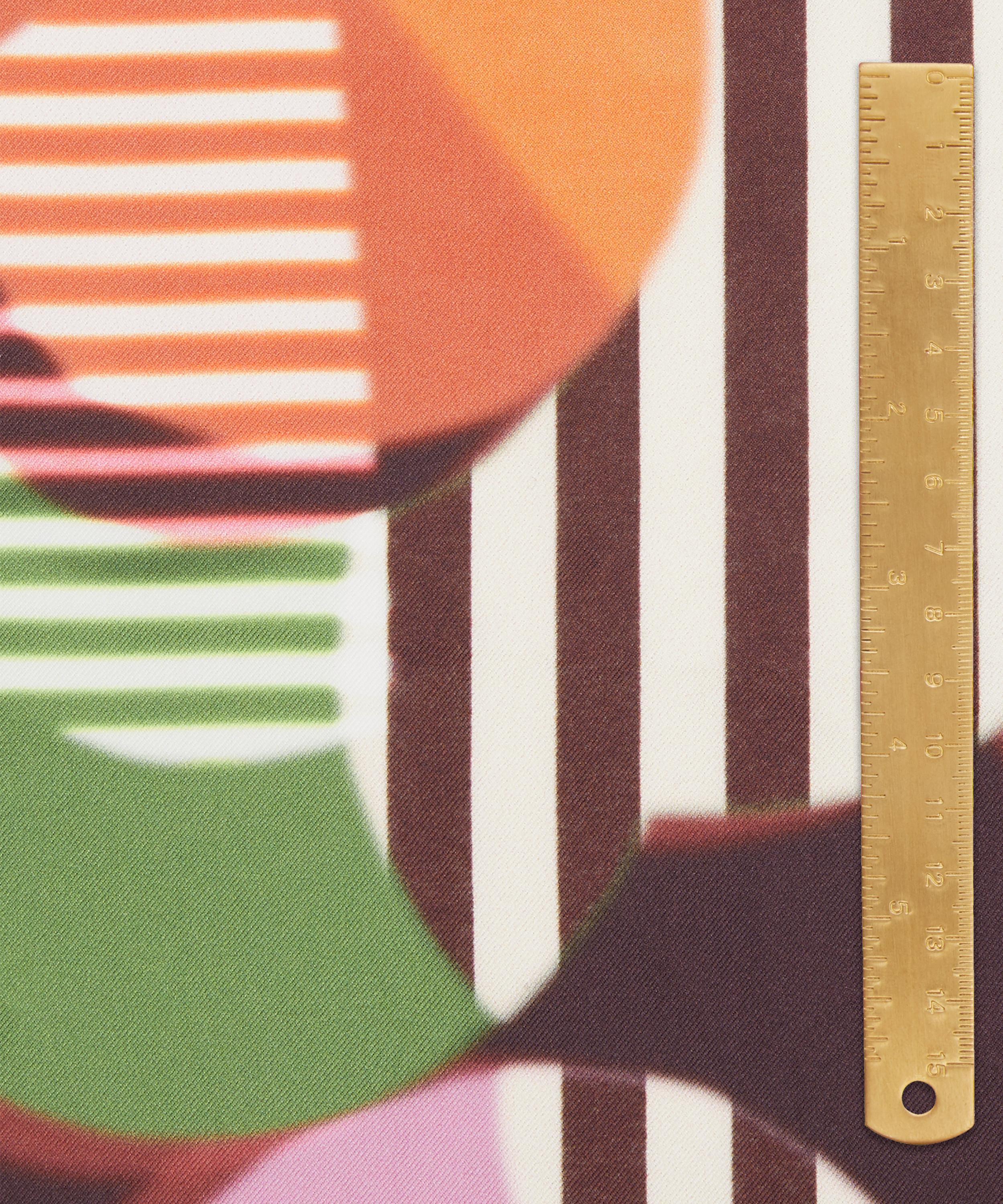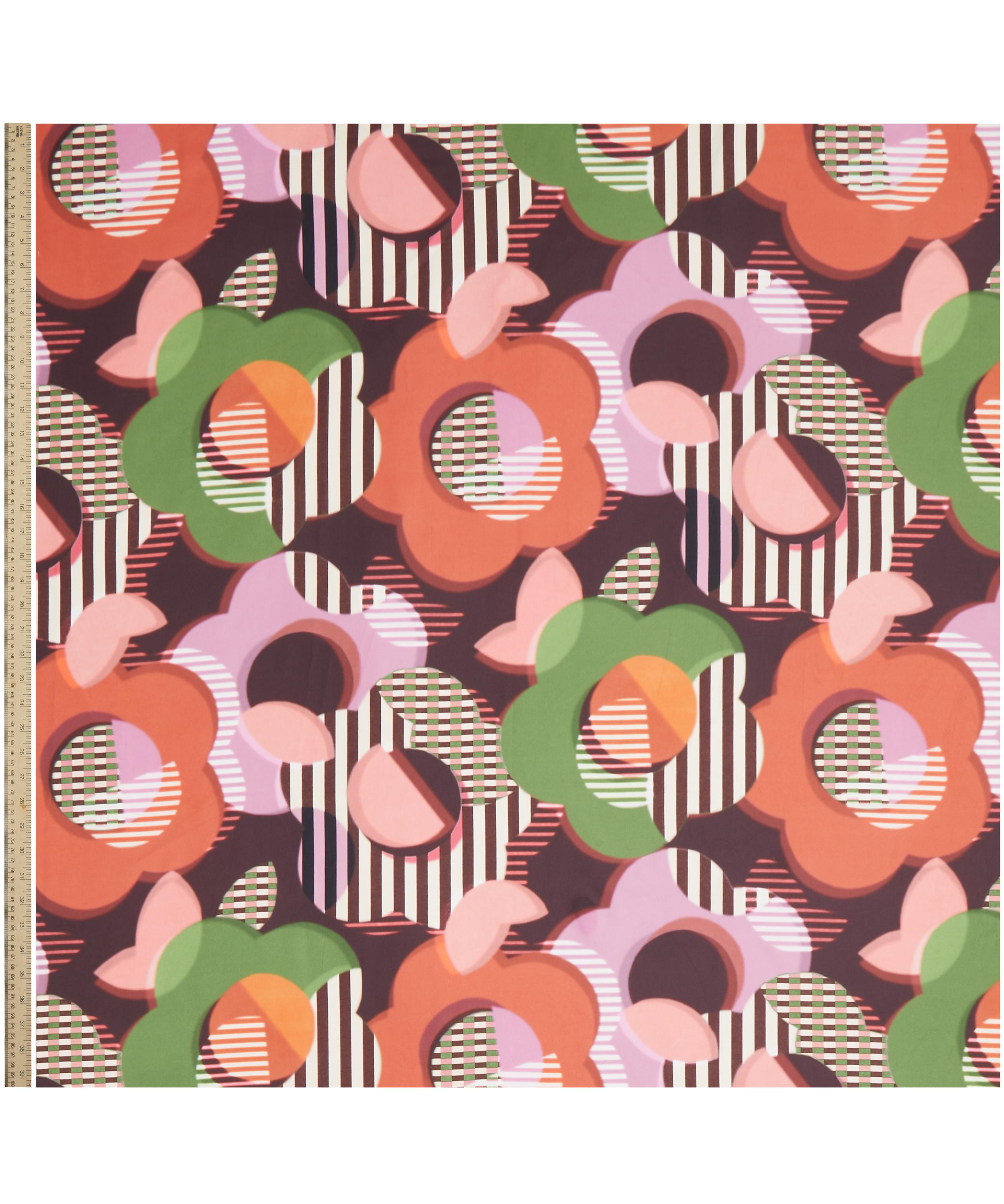 In 1983, Liberty showcased its avant-garde spirit by hosting an exhibition of the radical design group, Memphis Milano. Inspired by the group’s hallmarks of playful, sculptural forms and optical, clashing patterns, Memphis stands out as a visually arresting design brimming with dazzling vitality. Spherical daisies cast soft overlapping shadows, while graphic cutouts dance amidst contrasting stripes, captivating the eye with a riot of illusory geometries. This print is part of the anniversary collection’s final chapter, Collectibles. Offering a design for each decade, this timeline of hero prints encapsulates 150 years - exploring the design house’s varied and influential handwriting while honouring key moments of creativity and discovery.
