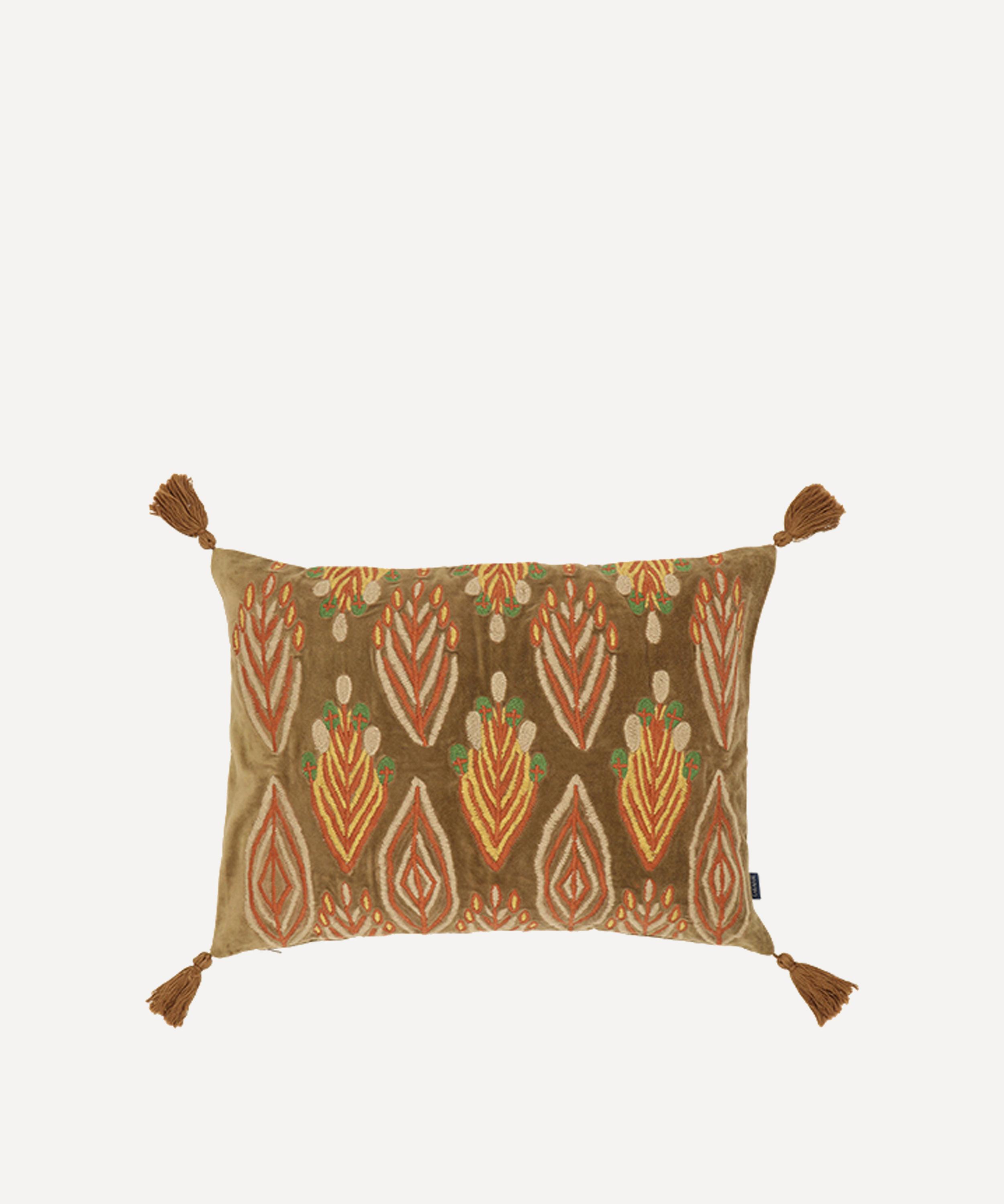 A homeware brand that celebrates the eclectic landscape of a lived-in home, this cushion cover is dressed in velvet and detailed with embroidery. Complete with a tassel to each corner, this piece is perfect for adding texture and comfort to interior spaces.About Caravane