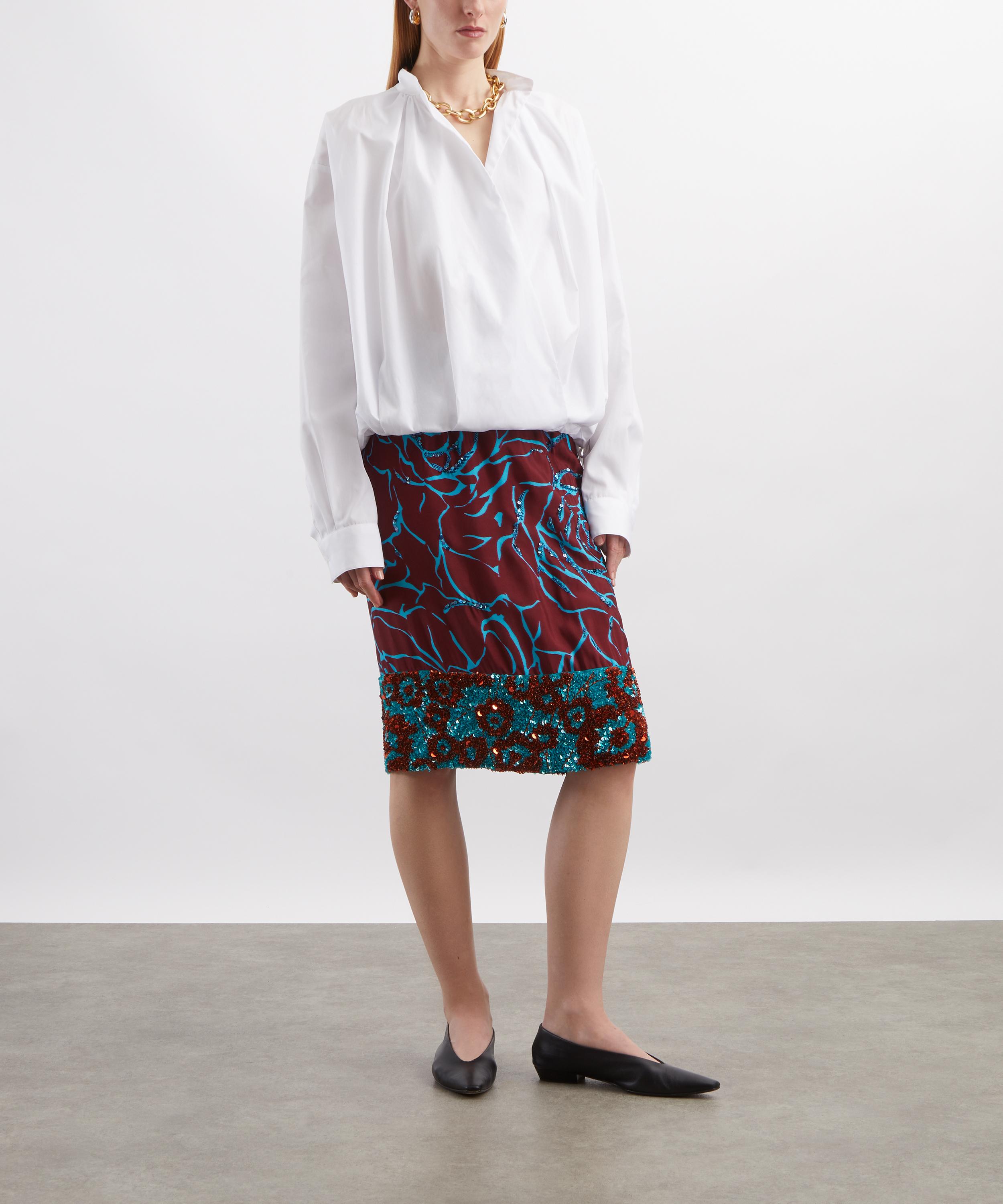 The Scotts Floral Embellished Skirt from Dries Van Noten exemplifies the Belgian label's avant-garde approach to contemporary fashion.