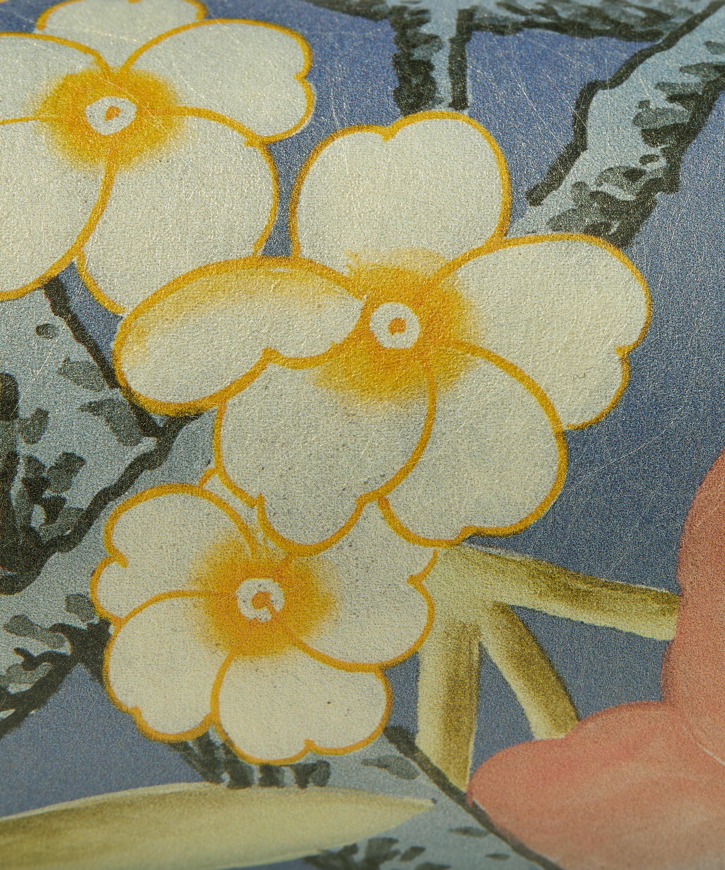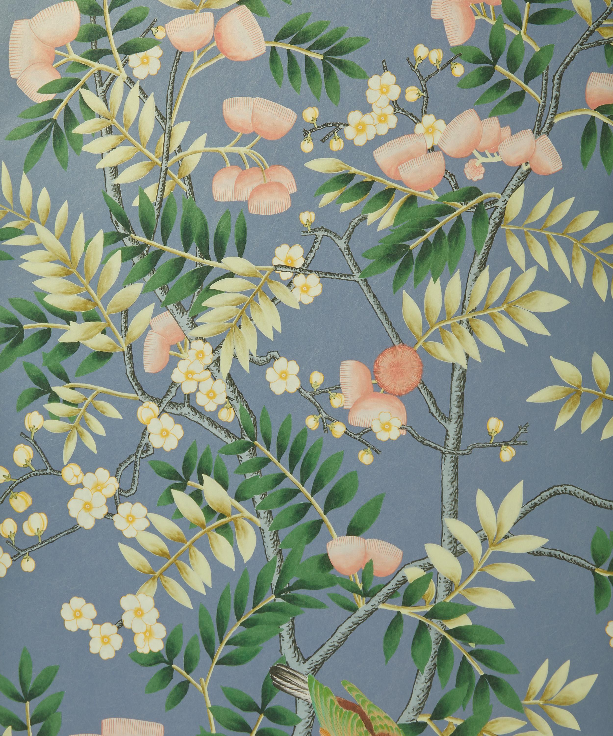 Meticulously crafted by skilled artisans and experts in traditional Chinese silk painting techniques, Silk Tree boasts a modern Chinoiserie design. The print features a striking canopy of tree and bamboo branches, decorated with birds, butterflies, and an assortment of vivid florals.