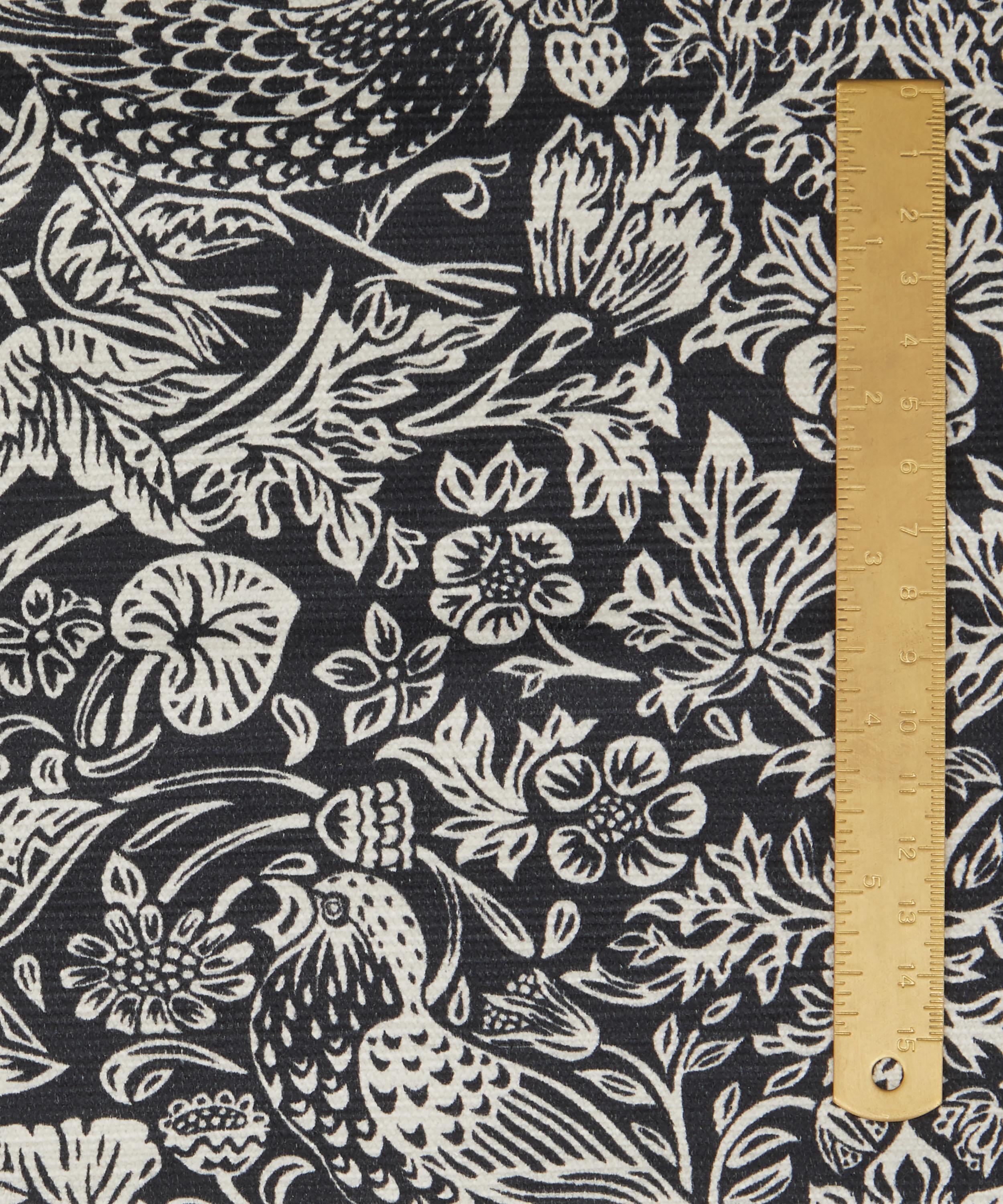 Strawberry Thief was designed by William Morris in 1883, and is part of a group of designs incorporating animals with flowers. Liberty first produced it as a furnishing fabric in 1979. Strawberry Meadowfield is a one-colour version of the original. It is expertly printed in Italy onto Vintage Velvet – a beautiful mixed-fibre base that’s suitable for both heavy domestic and contract use. Luxurious in feel and vibrant in colour, this velvet’s elegant drape also makes it ideal for heavier curtains with blackout or draft-excluding qualities.