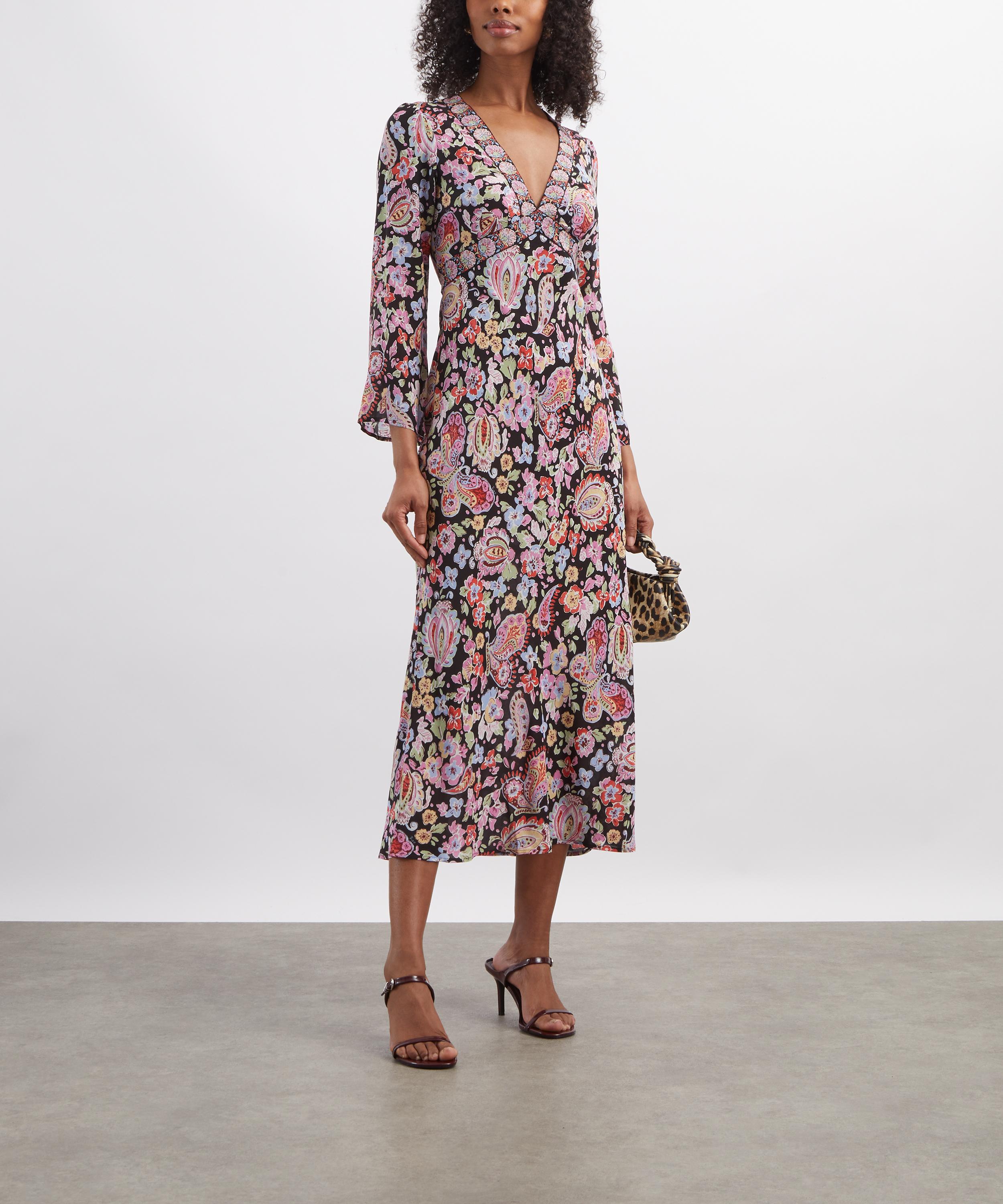 RIXO’s Tania Silk Midi Dress infuses your new season edit with a little retro elegance.