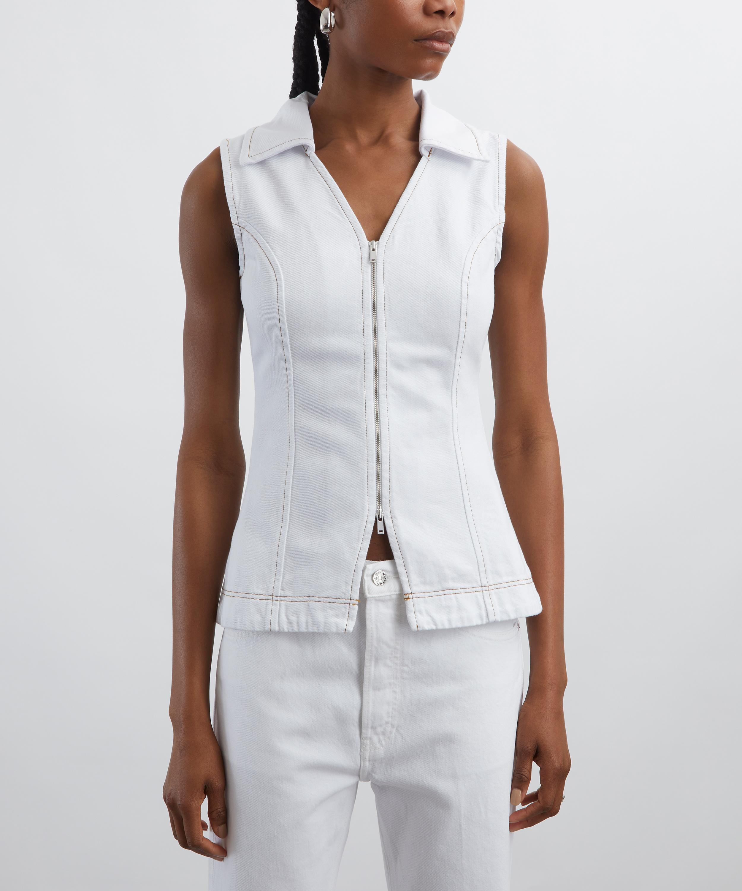 Crafted from cotton denim, this fitted waistcoat top features collared V-neckline, and a double-ended zip fastening, offering a modern yet effortless silhouette perfect for warm-weather dressing.
