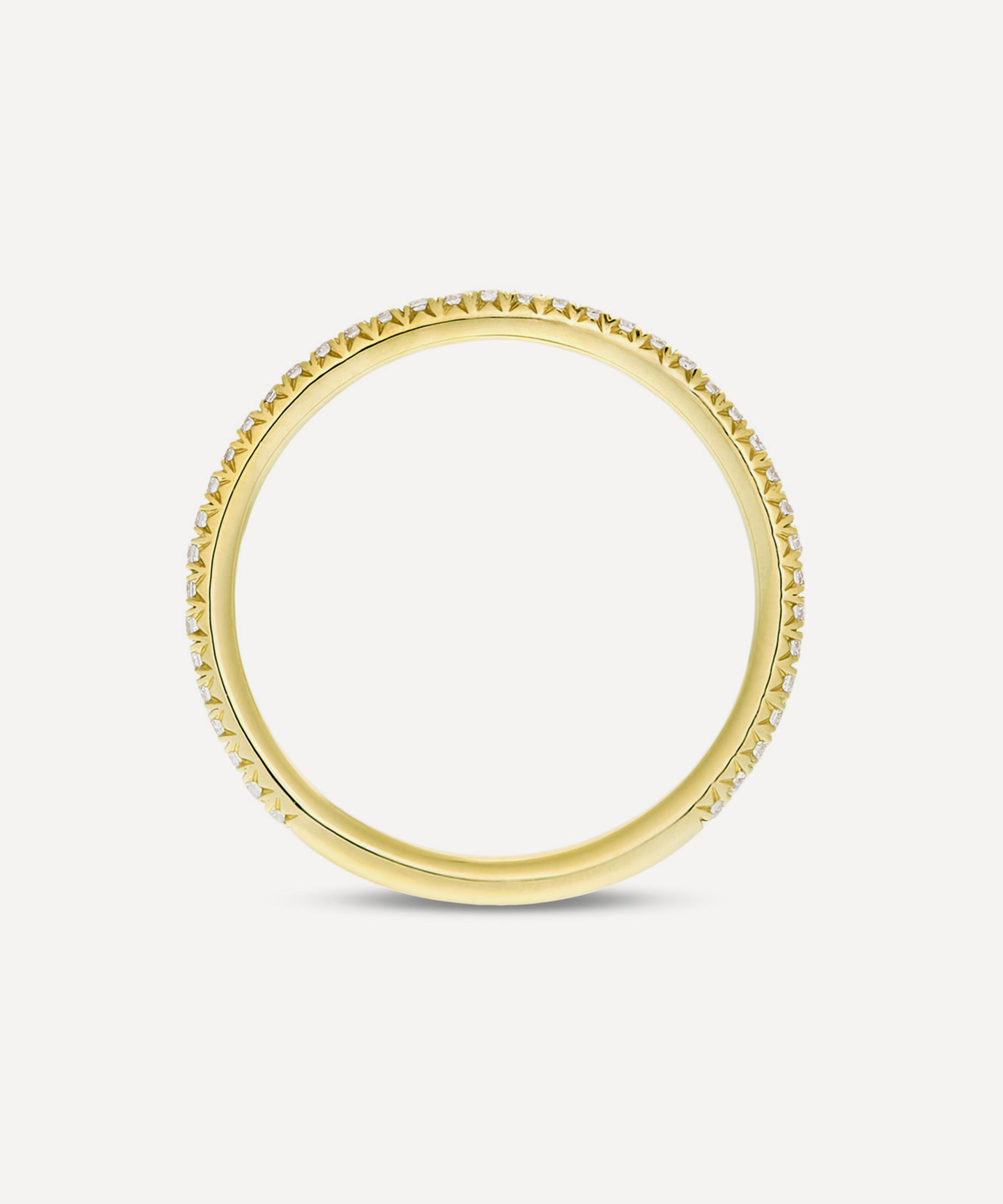 Signifying a lasting bond, it features a polished band rendered in solid 9ct gold, embellished with a continuous line of glistening, fishtail-set diamonds. Boasting a contemporary take on timeless jewellery, it can be worn solo for subtle sophistication or stacked with an engagement ring or wedding band.