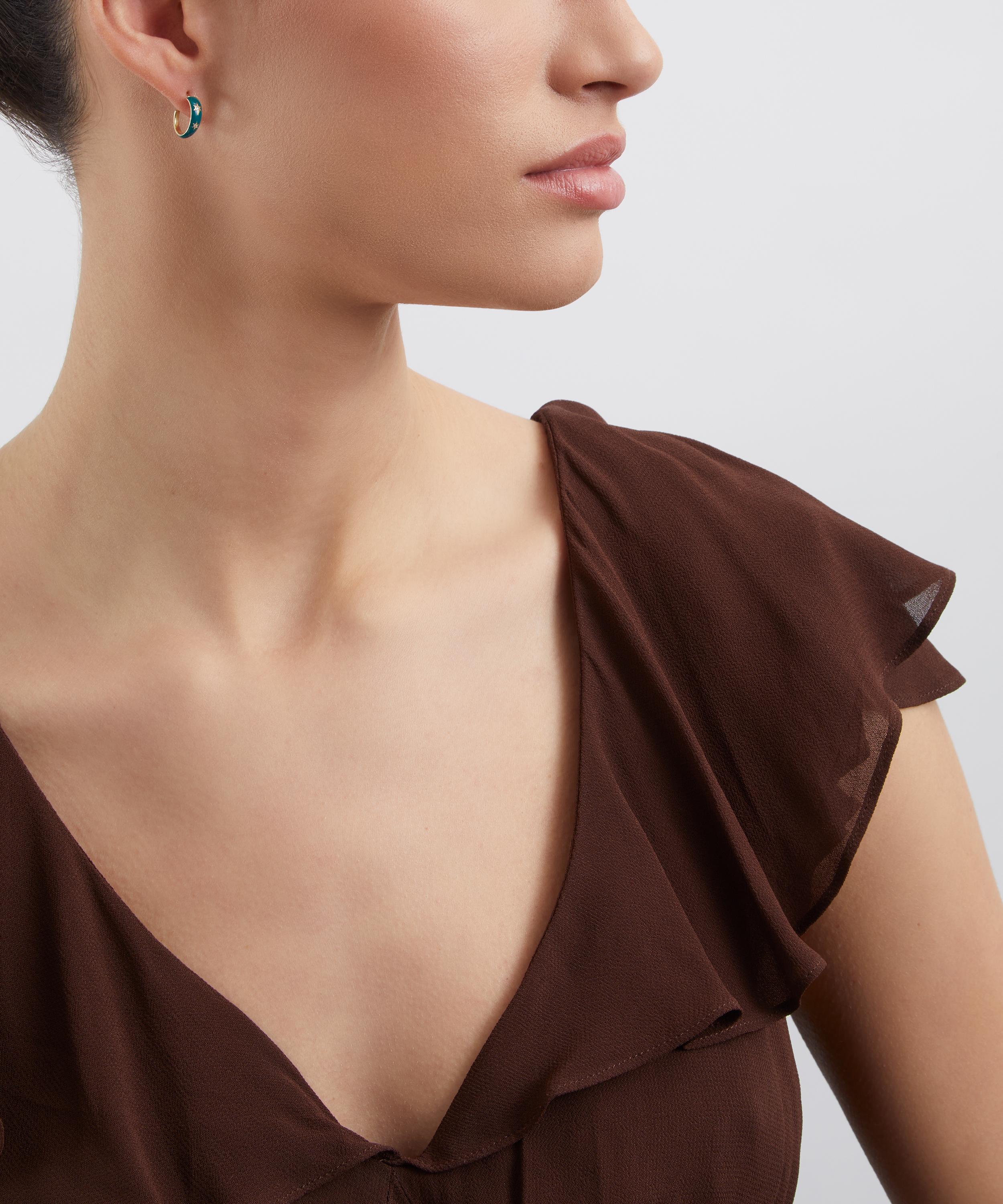Translating print details and vintage shapes into luxuriously jewelled textures, the Ianthe Star Glazed Hoop Earrings capture Liberty’s historic passion for artists and artisans. Crafted from solid 9ct gold, each earring features a half hoop coated in glazed blue enamel, intricately decorated with star-set diamonds – boasting a twinkling modern heirloom that pays tribute to Liberty’s collector spirit.