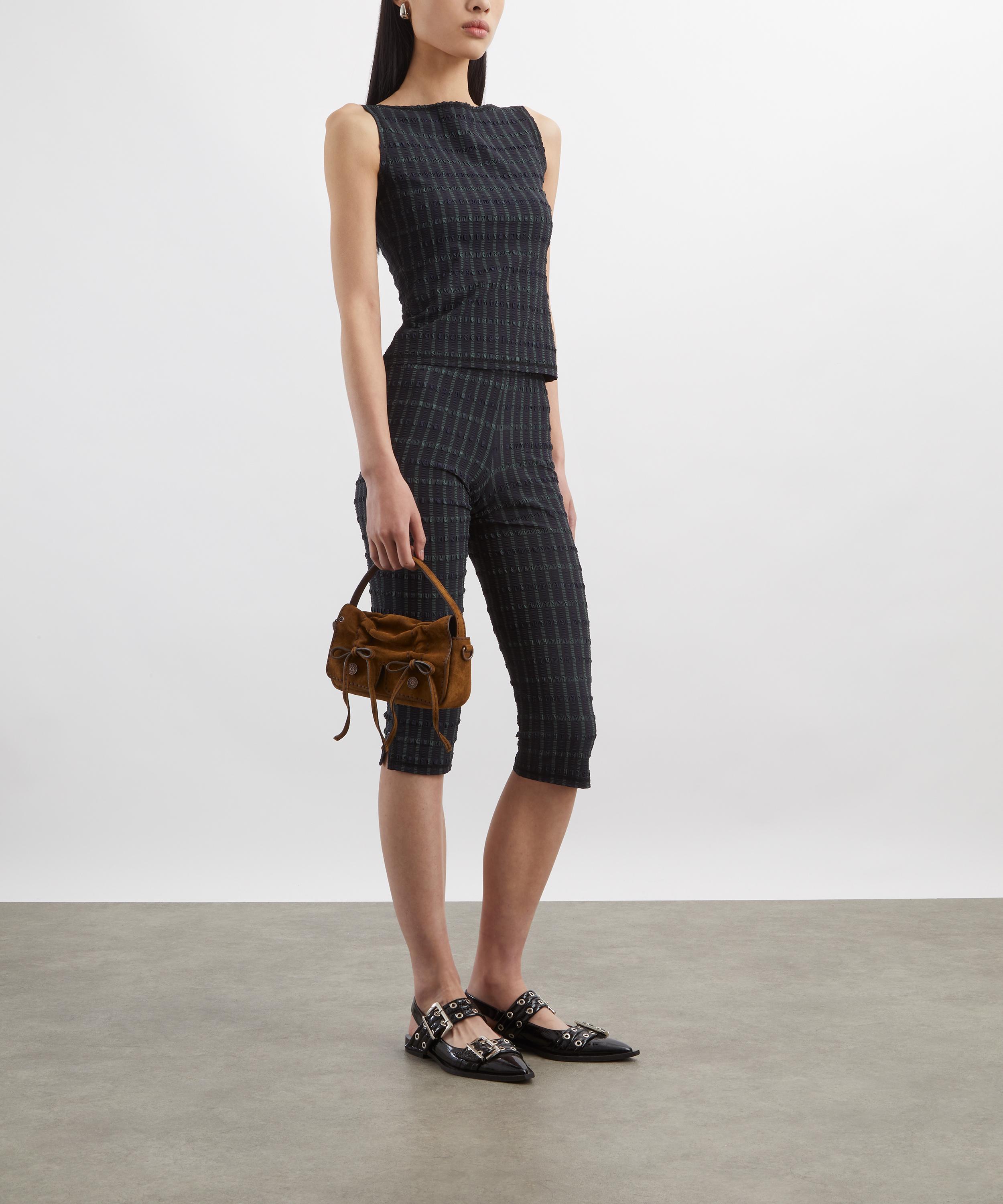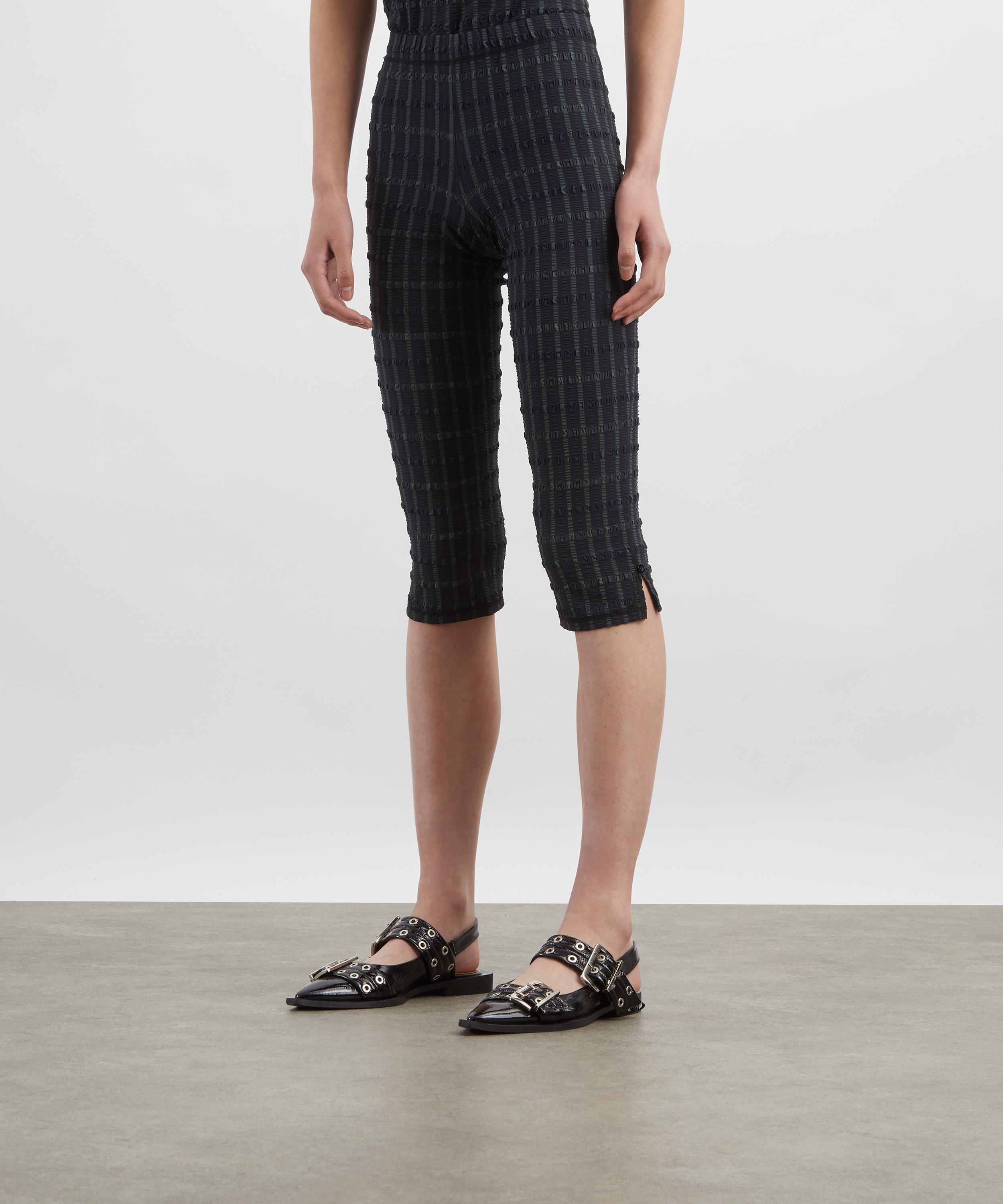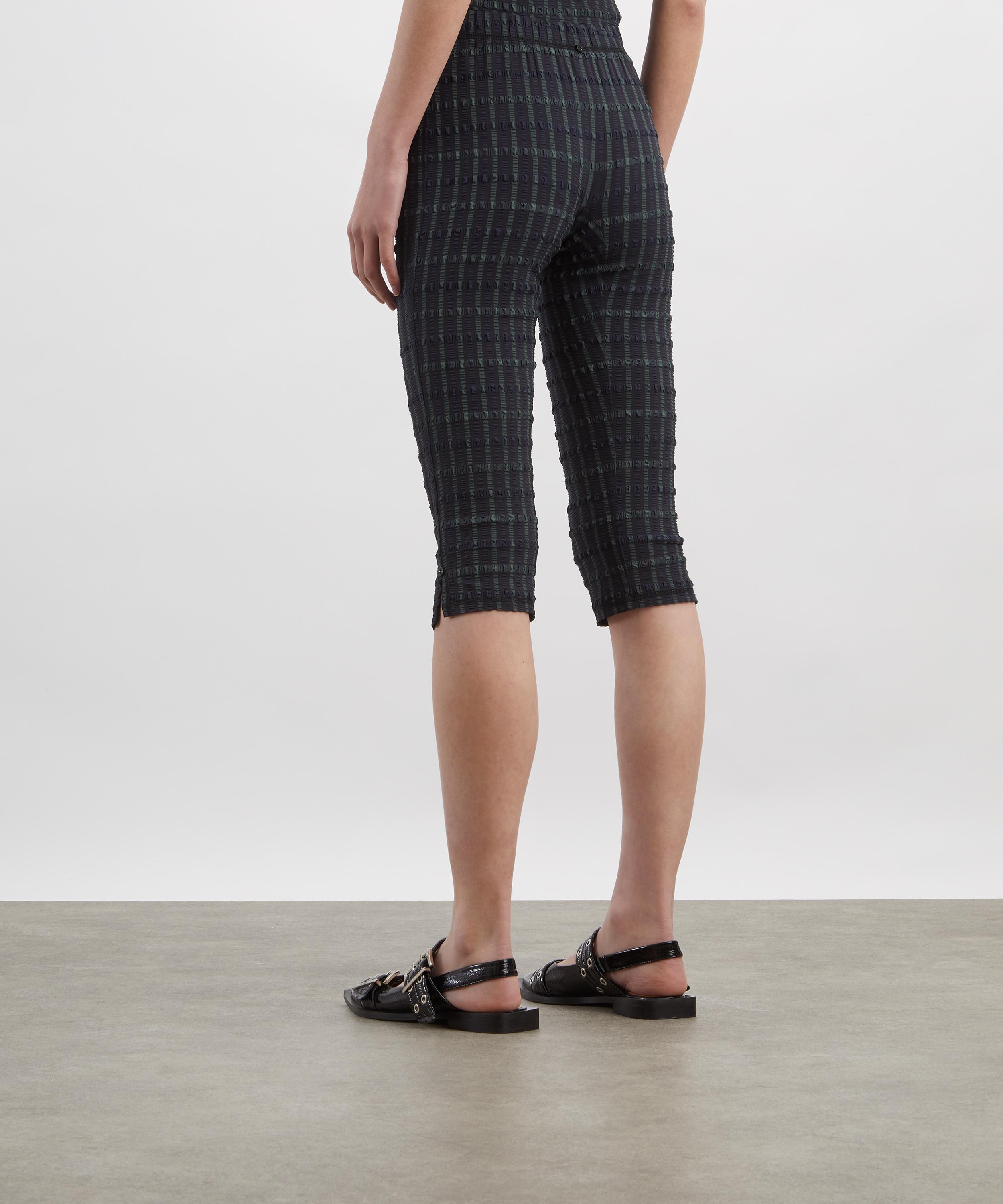 A modern twist on the classic bike short, the Cindy Capris offer an elongated silhouette with a mid-rise fit, sculpting seams, and side vents for ease of movement. Crafted from checkered seersucker, they blend comfort with understated edge.