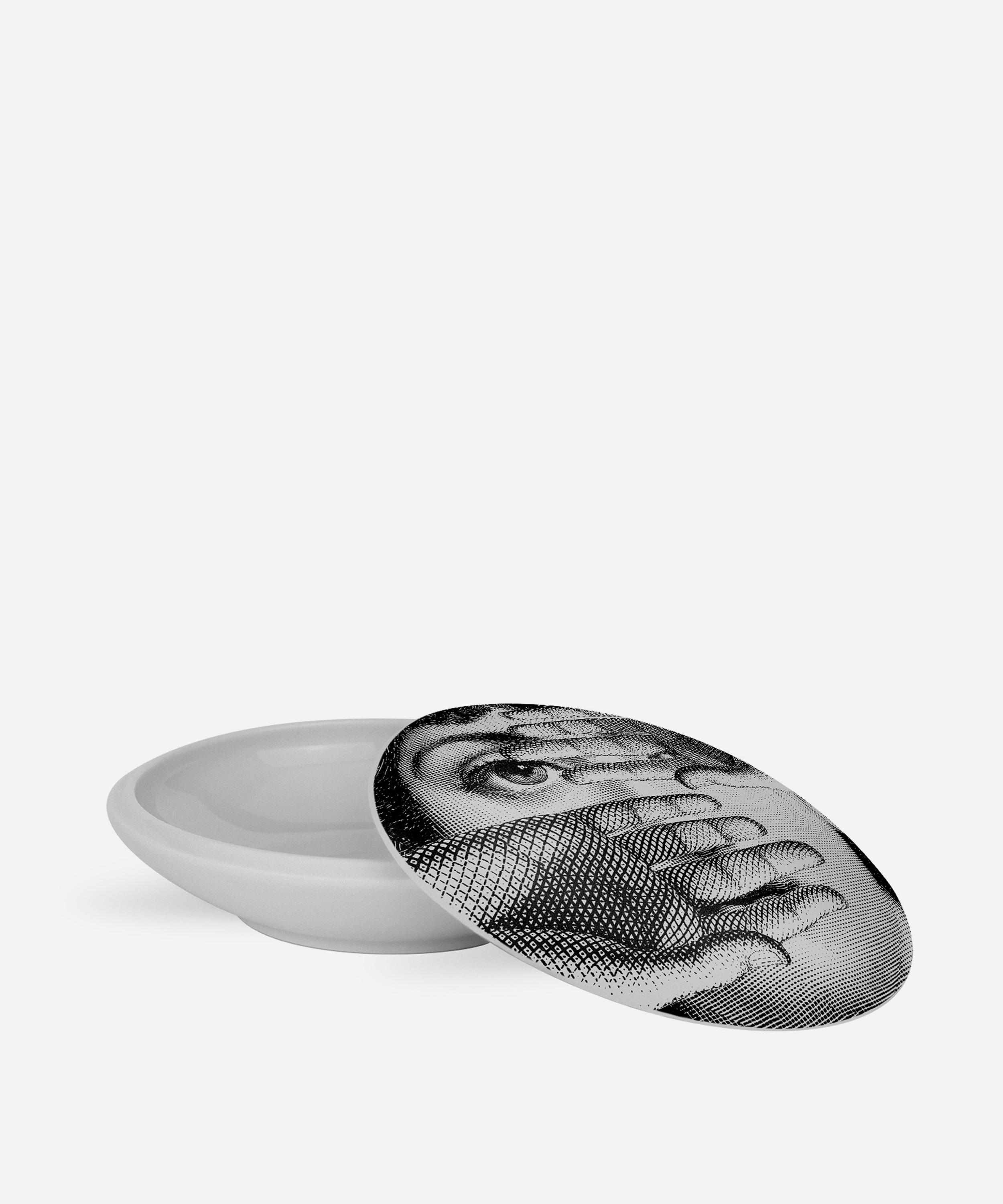 Breathing wit, imagination and ever-present eclectic style into its charming collections, Fornasetti welcomes this Tema e Variazioni round trinket box.